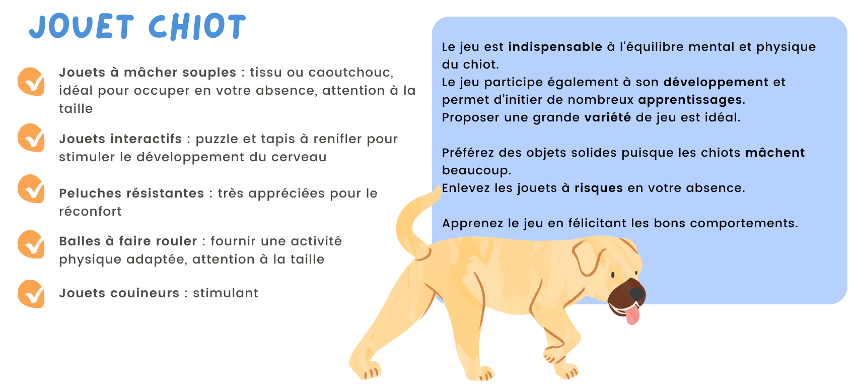 Il est également important de choisir des jouets sûrs, non toxiques et adaptés à la taille de la mâchoire de votre fidèle compagnon.