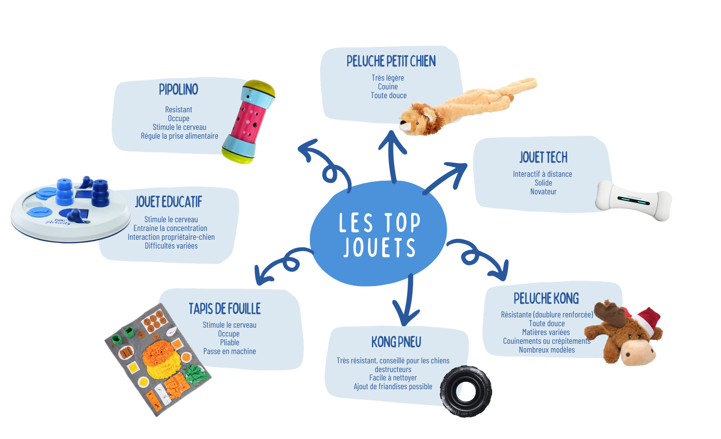 Votre choix peut s'orienter en fonction de votre besoin.Proposer une variété de jouets peut garder votre chien stimulé et engagé.