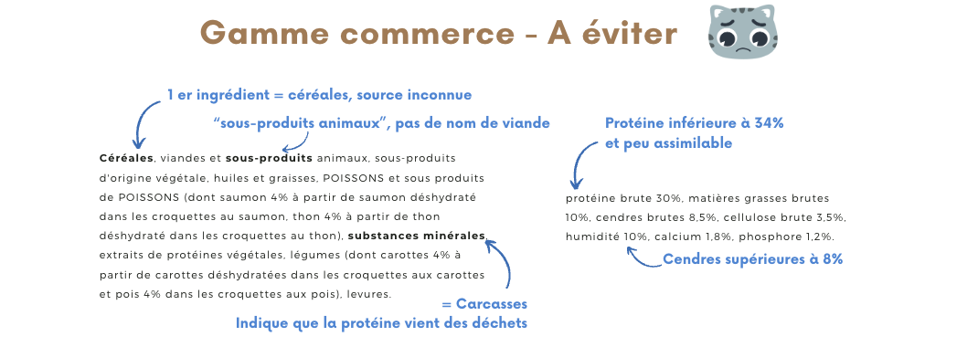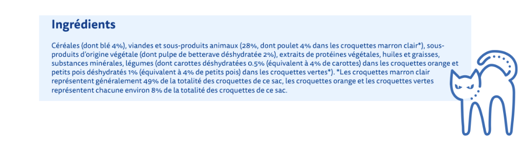 Attention également au marketing et au paquet modernes et accrocheurs qui ne reflètent en rien la qualité de l'aliment, car en réalité les termes sont trompeurs.