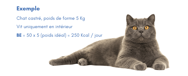 • chat stérilisé sédentaire: BE=50*poids idéal.