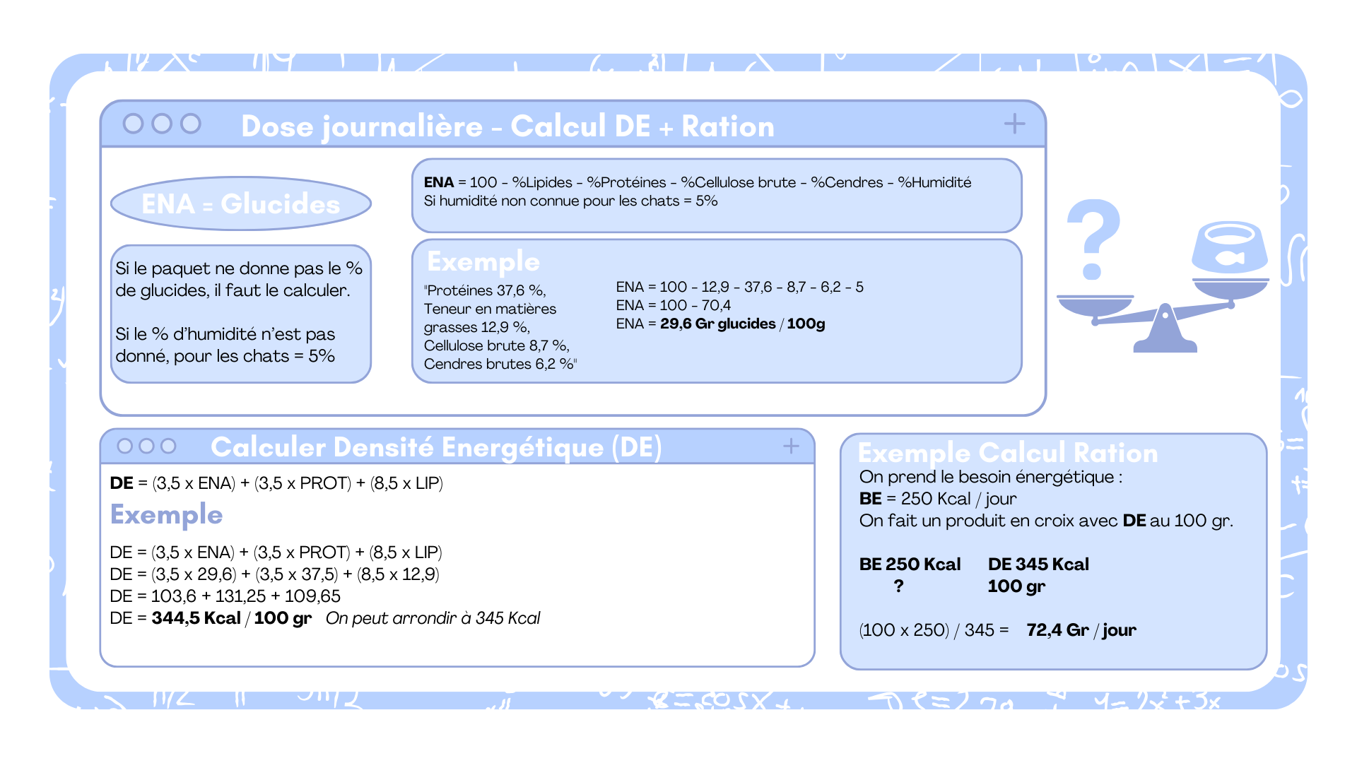 Calcul BE et calcul ration croquette chat