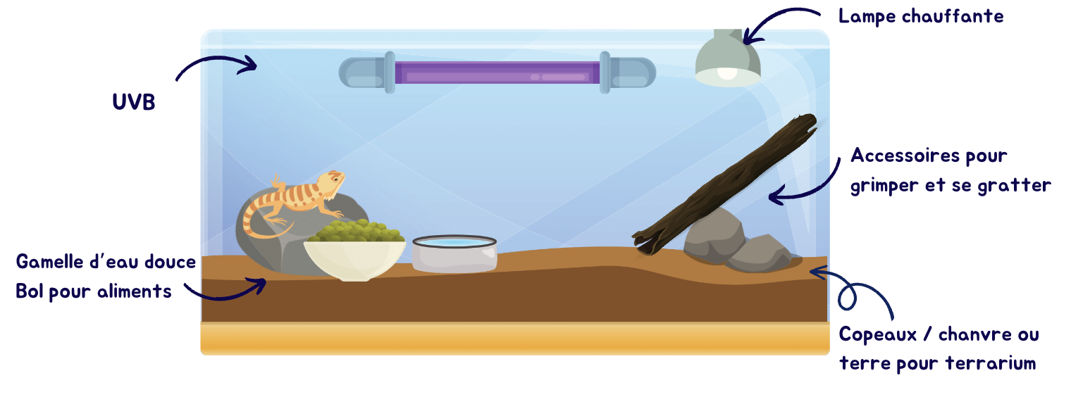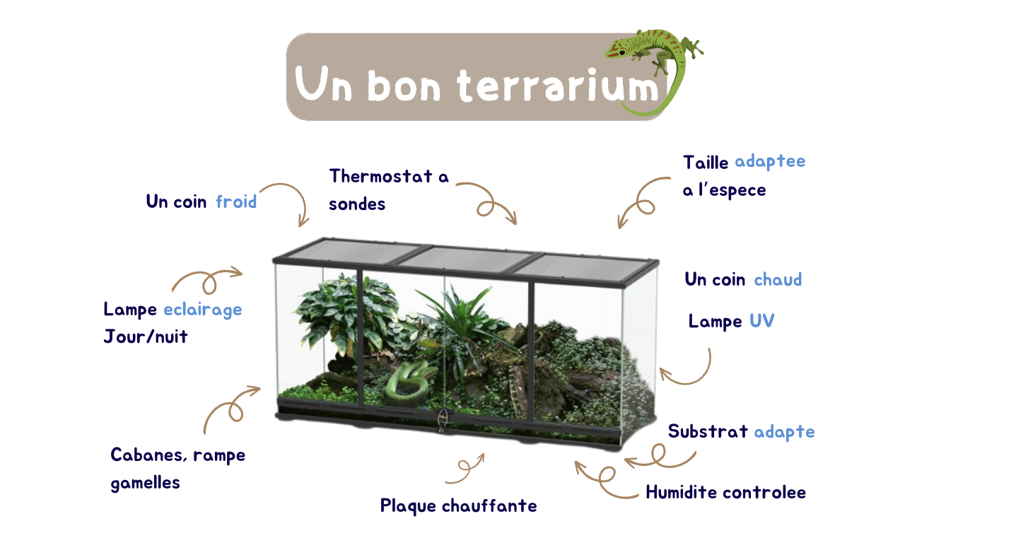 Les reptiles ont besoin d'accessoires dans leur environnement.