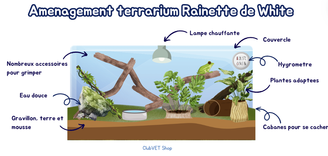 • Terrarium avec couvercle (les grenouilles peuvent escalader les murs de verres).
