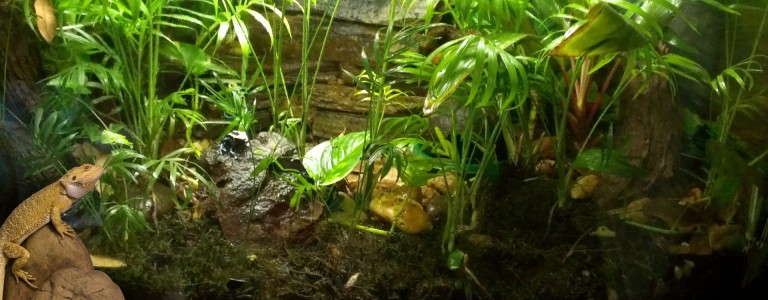 • Terrarium de taille adaptée : pas trop grande pour un pogona en croissance (éviter les paniques), 80x40x50 environ pour un adulte et dès 100x40x50 pour plusieurs pogonas ( 2 femelles un mâle par exemple).