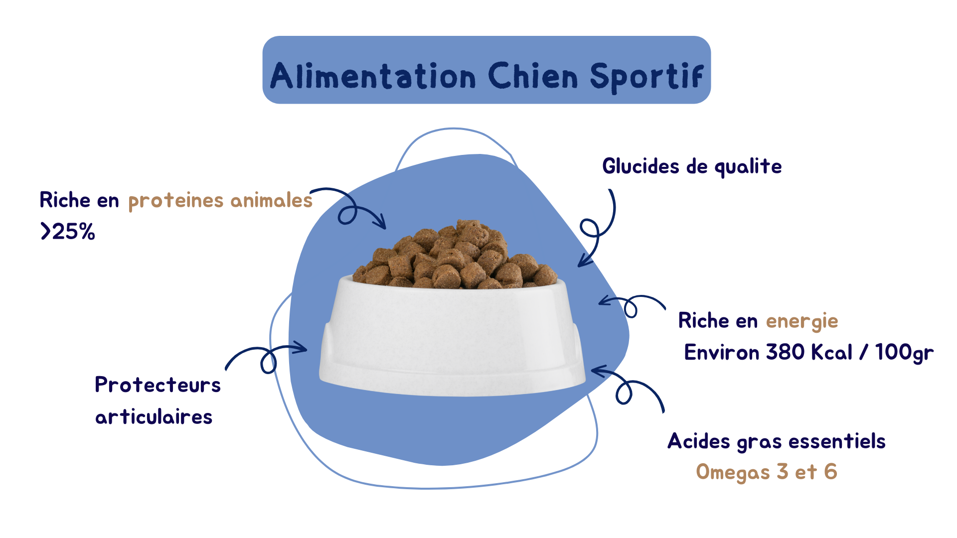 Un chien bénéficie d'une alimentation pour sportif s'il pratique plusieurs fois par semaine une activité spécifique, suis des entraînements ou effectue des efforts intenses :