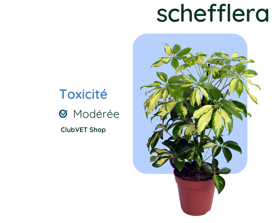 Originaire des régions tropicales, le Schefflera, souvent utilisé comme plante d’intérieur, est toxique pour les animaux.Bien que les cas graves soient rares, il est préférable de limiter l’accès de cette plante aux animaux pour éviter tout risque.
