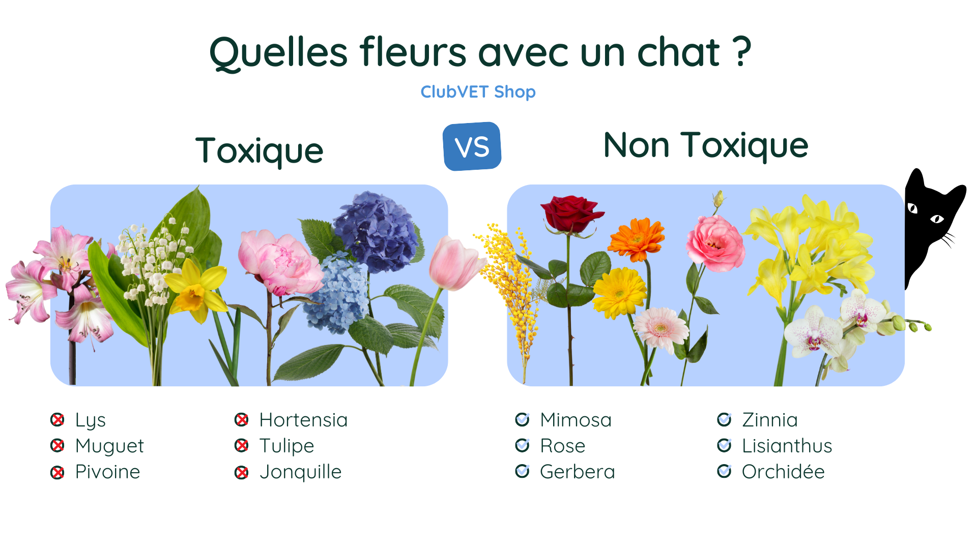 - Soyez vigilant aux bouquets de fleurs qui peuvent contenir des lys, des tulipes ou des jonquilles, souvent toxiques. Sensibilisez vos proches qui seraient susceptibles de vous offrir des fleurs. D'autant qu'après cette lecture, vous avez compris que les plantes saisonnières que l'on a tendance à offrir sont dans la liste des plantes les plus toxiques...